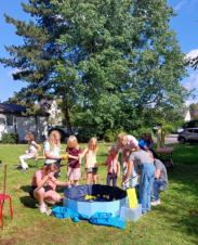 Weltkindertag  Bei schönstem Sonnenschein durften wir am Sonntag unseren Stand auf dem Weltkindertag aufbauen. Die Wiese vor der kleinen Turnhalle verwandelte sich in eine Aktionsfläche für verschiedene Aktivitäten. Die Kinder hatten viel Spaß und man konnte auch viele Eltern in Aktion sehen. Es wurden unglaublich viele Nägel in Baumstämme versenkt, Entchen geangelt, Segelboote in den sicheren Hafen manövriert und Erbsen zielsicher zerschlagen. Vielen Dank an alle Organisatoren für diesen tollen kindgerechten Tag im Park!