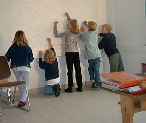 einige Kinder bei der Arbeit und malen