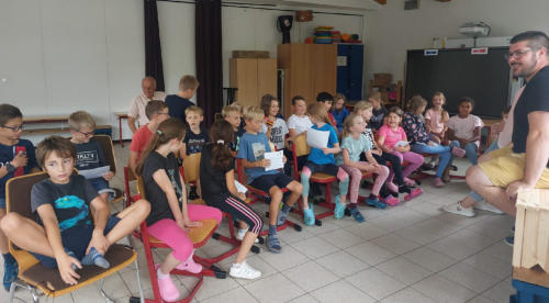 Start der Bläserklasse  Die Bläserklasse legt los!  Wenn Sie demnächst bei uns im Haus Flötenklänge, Posaunen, Trompeten oder auch einen Paukenschlag hören, dann kommen Sie in den Genuss unseren Bläserkindern zu lauschen. In Kooperation mit dem Musikverein Lindlar starteten an diesem Donnerstag 29 Kinder des 3. Jahrgangs mit der Bläserklasse. Zunächst wurden Notenhefte verteilt, Notenständer aufgestellt und die Kinder lernten ihre Musiklehrer*innen kennen. Mit viel Spannung, großen Augen und offenen Ohren kamen die Schüler*innen im Mehrzweckraum zusammen. Herr Tobias Sünder (Leiter und Koordinator der Bläserklasse) und Herr Rudi Feder (Koordinator des Musikvereins Lindlar) begrüßten alle Teilnehmer*innen und hatten einiges zu berichten. Wir freuen uns alle auf die musikalischen Stunden, denen wir nun immer donnerstags lauschen können und werden nächste Woche von der Instrumentenvergabe und den ersten Klängen berichten.