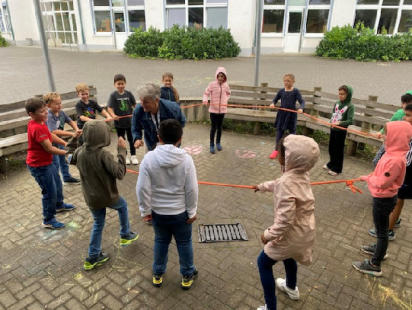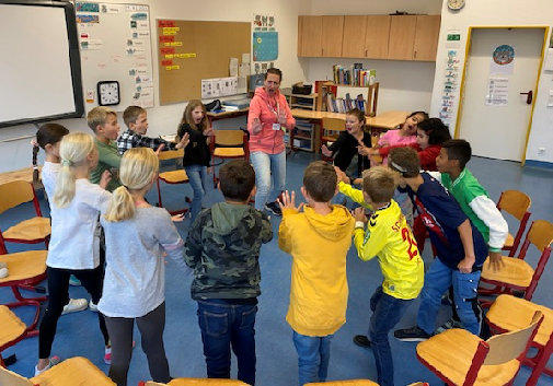 Mut tut gut  „Wer sicher und gewaltfrei aufwachsen darf, geht glücklicher durchs Leben! Umso wichtiger ist es, dass Kinder schon frühzeitig lernen, sich zu schützen. Denn bedrohliche Übergriffe, Aggression und auch Gewalt gehören heute leider zur Realität vieler Kinder. Mutige kleine Menschen können Notlagen besser erkennen und haben oft ein gutes Gespür, wann sie Hilfe holen müssen.“ In der vergangenen Woche waren wieder vier Trainer*innen in den Klassen  3a und 3b, um die Kinder in Kleingruppen und in verschiedenen Spiel- und Gesprächssituationen zu stärken. „Was kannst du gut und macht dich einzigartig?“ ist eine Gedankenreise, auf welche die Kinder sich begeben. Wie setze ich eine Grenze, wenn mir etwas nicht gefällt oder sich ein komisches Gefühl im Bauch aufbaut. Muss ich fremden Personen immer antworten, wenn sie mich ansprechen? In Spielen wurden verschiedene Situationen durchgespielt, viel Bewegung und auch Spaß am gemeinsamen Spiel kitzelten die Situationen heraus. Im Gespräch wurden Lösungen besprochen und es war toll zuzuhören, wie die Kinder im Laufe des Kurses immer differenzierter aufeinander eingehen konnten. Ein kleiner Baustein, um die Kinder stark und mutig zu machen.