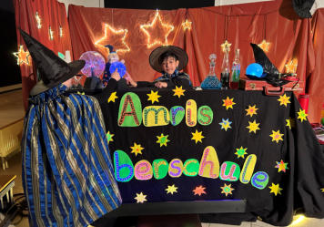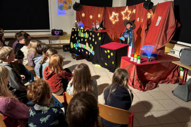 Komm und lass‘ dich verzaubern!  Zaubern fördert bei Kindern die unterschiedlichsten Fähigkeiten, wie zum Beispiel die Feinmotorik, das Konzentrationsvermögen und die Fähigkeit Handlungen zu planen und bis zum Ende durchzuführen. Gute und überzeugende Gründe, das Zaubern in der Schule zum Unterrichtsfach zu machen und so steht bei einer kleinen Gruppe Schülern seit Anfang des Schuljahres das Zaubern mit Frau Stutz fest im Stundenplan. Einmal in der Woche wird also erforscht, wie Zaubertricks funktionieren und es werden neue Tricks einstudiert. Letzte Woche Freitag war es dann endlich so weit. Die beiden Zauberschüler Osman und Milan luden ihre Klassen zur großen Zaubershow in die „Zauberschule“ ein. Souverän präsentierten sie ihre einstudierten Tricks, die eingebettet in eine Rahmenhandlung für gute Unterhaltung und die ein oder andere Überraschung sorgten. Mit jedem Auftritt konnte man mehr und mehr beobachten, wie die beiden über sich selbst hinausgewachsen sind. Eine tolle Leistung der beiden Zauberkünstler!!!